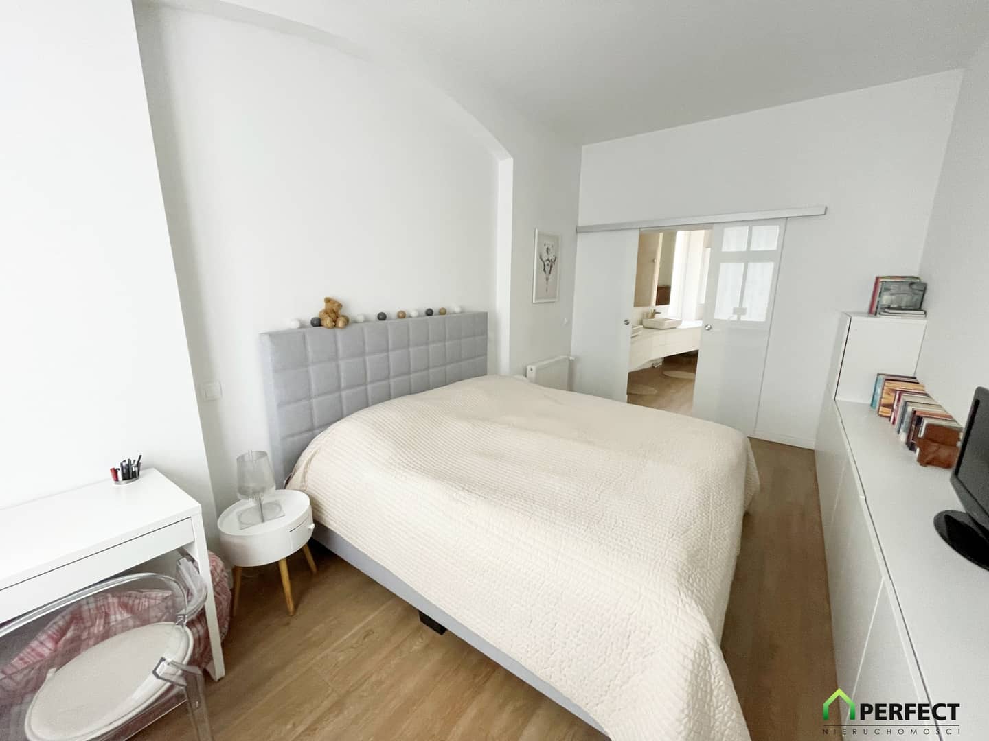 Mieszkanie po remoncie, utrzymane w bardzo ładnym, kamienicznym stylu. Na podłogach położono panele, a na ścianach gładzie, z uwzględnieniem pięknych stiuków podsufitowych. Dokonano przesunięcia ścian tak, aby mieszkanie zyskało jeszcze więcej przestronności.