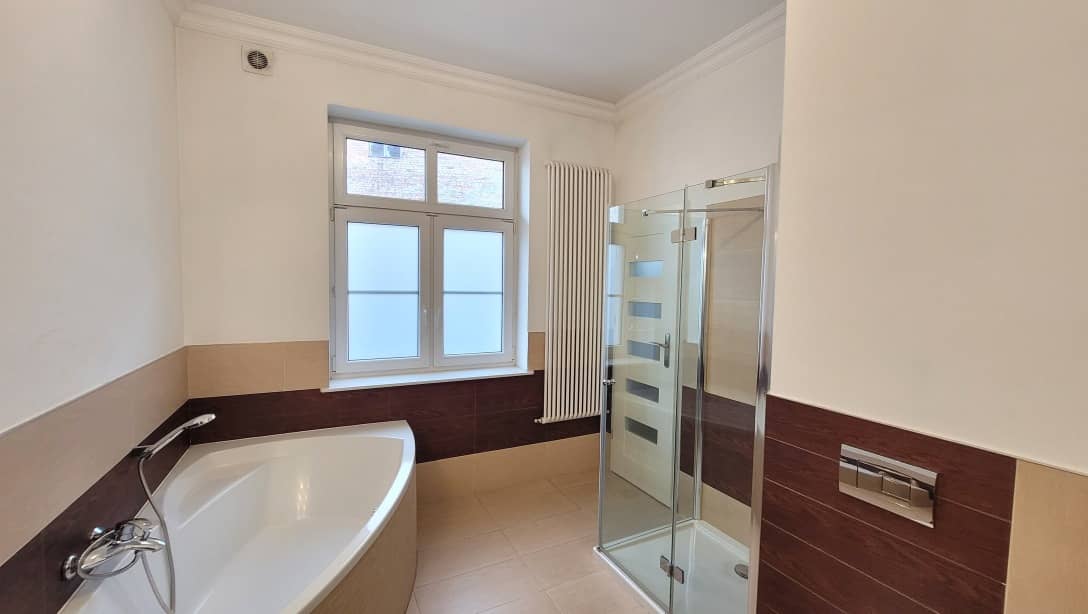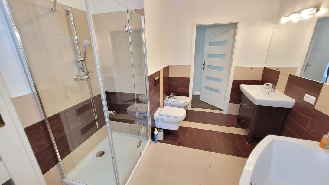 - mieszkanie po remoncie z wymienionymi instalacjami, okna plastikowe, na podłodze panele lub kafle, łazienka wykafelkowana z wanną, kabiną prysznicową, toaletą i małym schowkiem