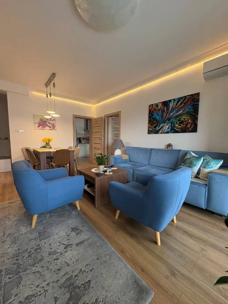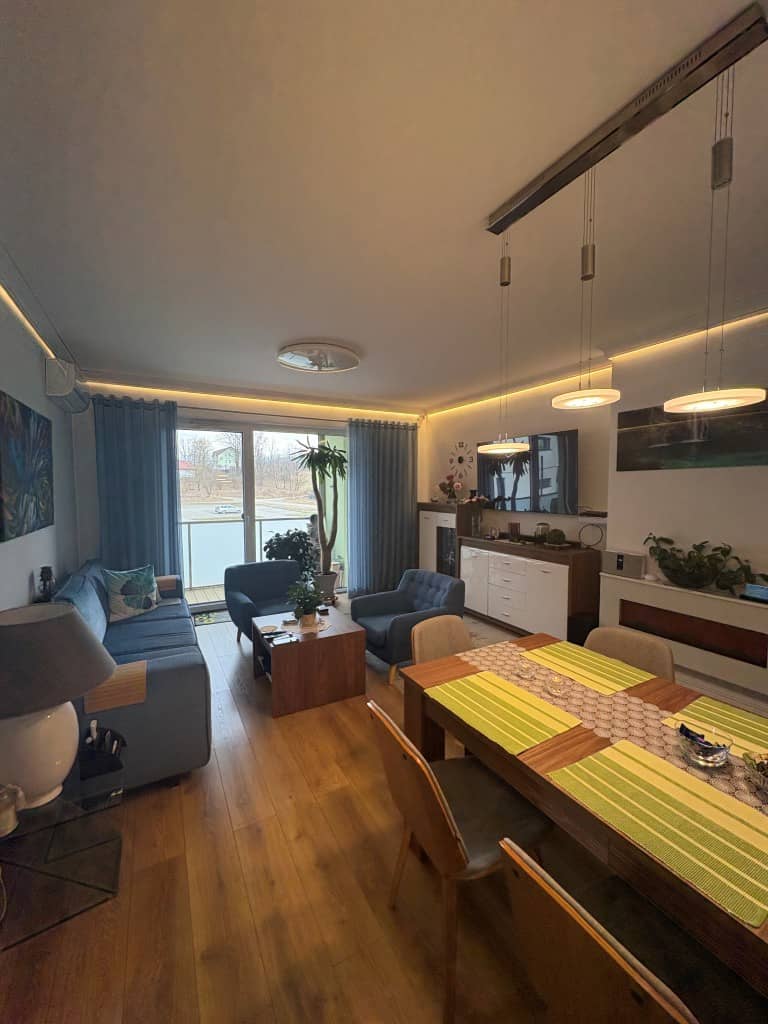 Mieszkanie słoneczne, ciepłe i wykończone w wysokim standardzie. Rolety zewnętrzne antywłamaniowe, ogrzewanie podłogowe w salonie w pozostałych pomieszczeniach grzejniki ścienne.