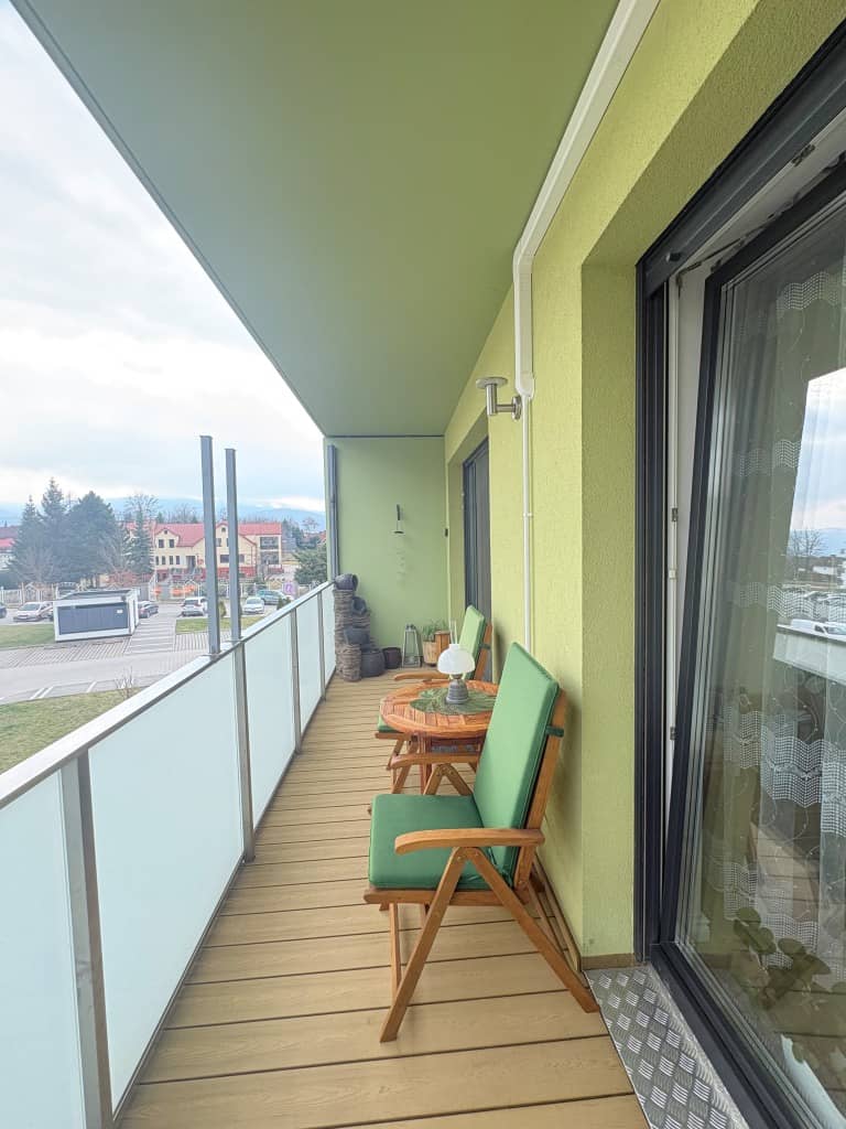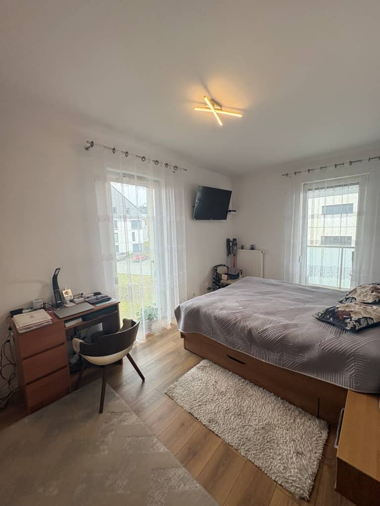 - pokoju dziennego i sypialni z wyjściem na duży balkon około 10 mkw,