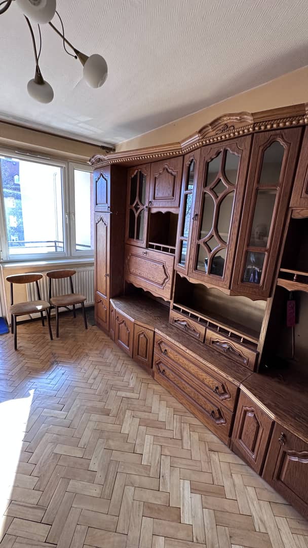 Mebel w dobrym stanie, pojemny i funkcjonalny, idealny do salonu lub pokoju dziennego. Posiada liczne półki oraz szafki, dzięki czemu zapewnia dużo miejsca do przechowywania.