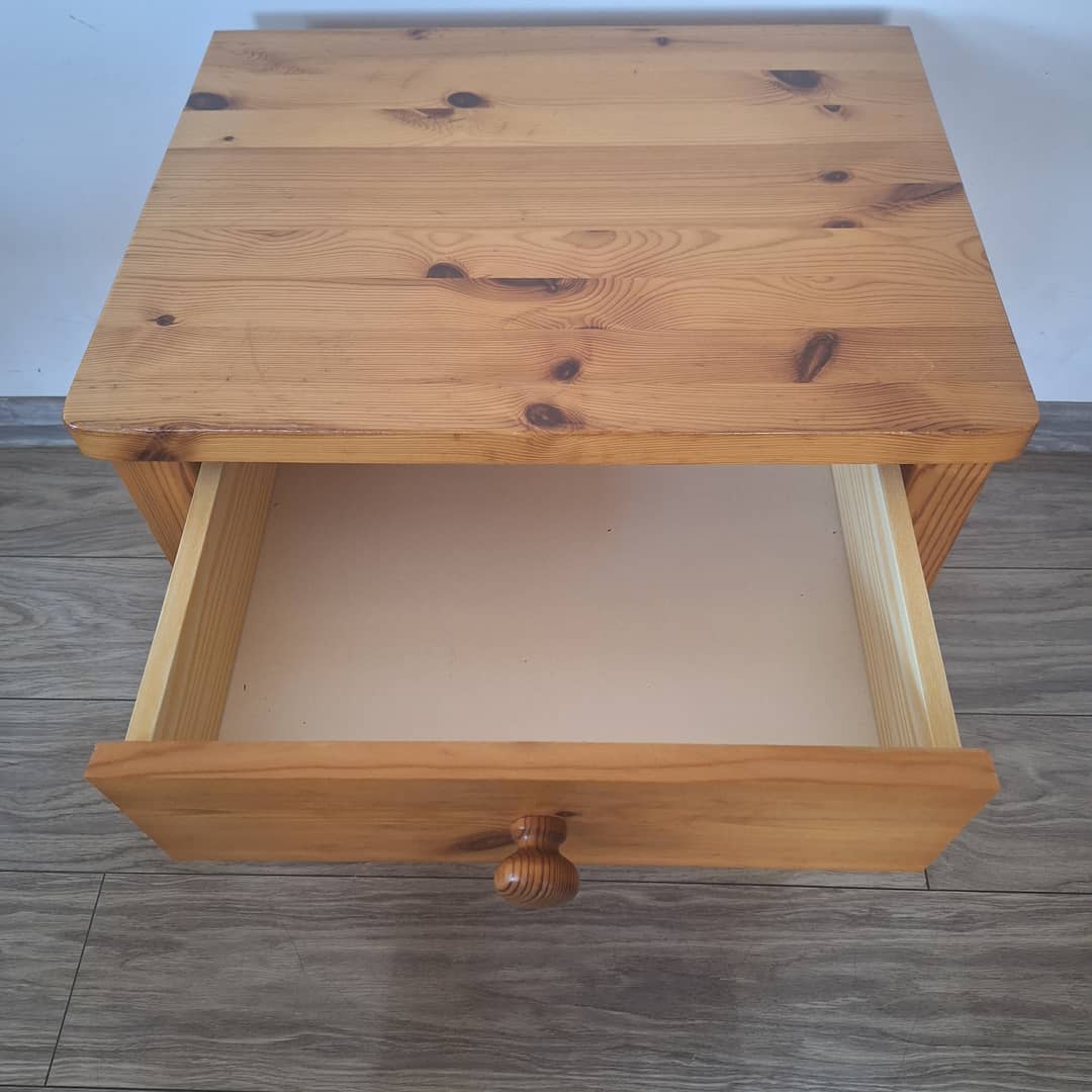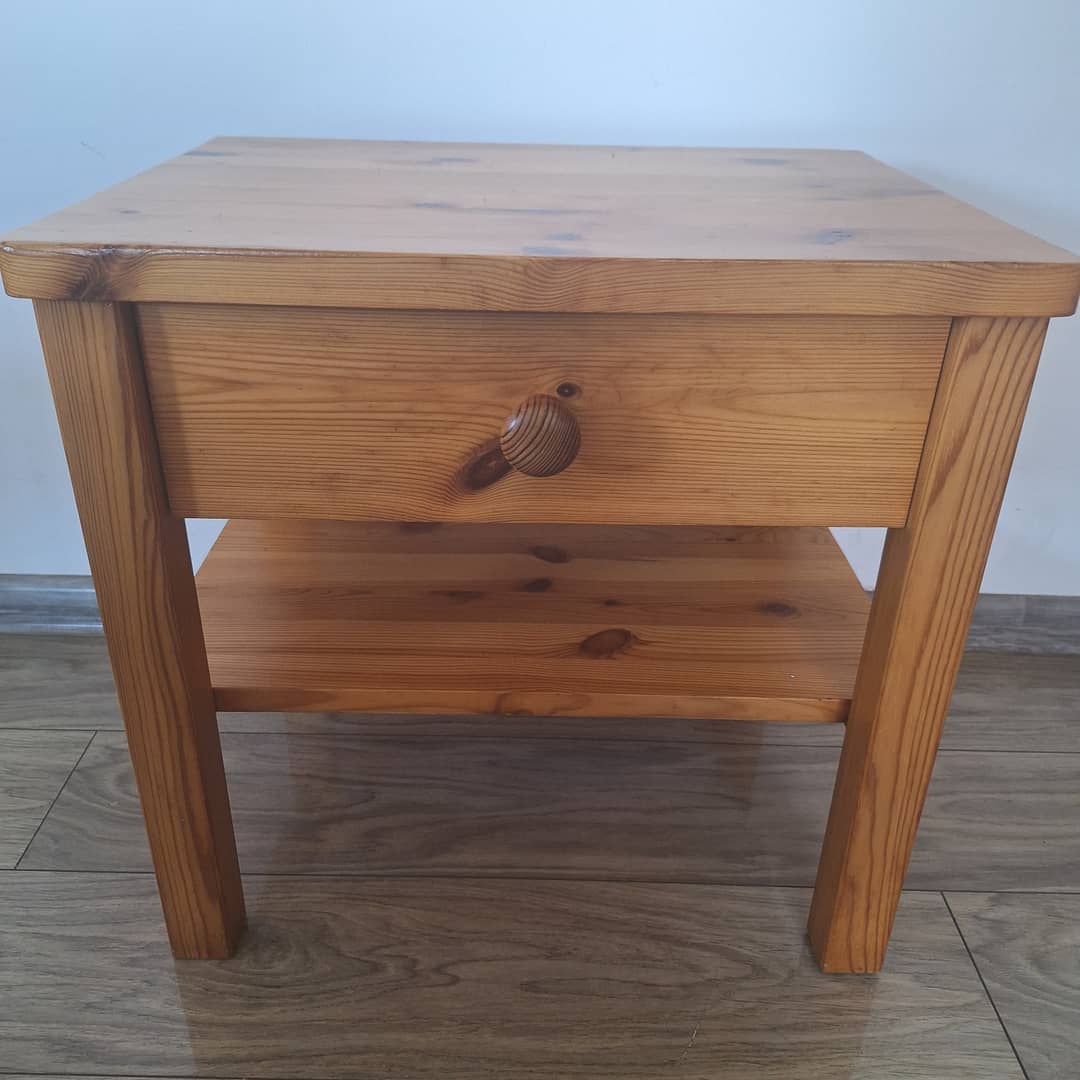 Szafka nocna drewniana z szufladką wymiary 50/39/48 cm. Możliwy dowóz lub wysyłka. Cena 110 zł.