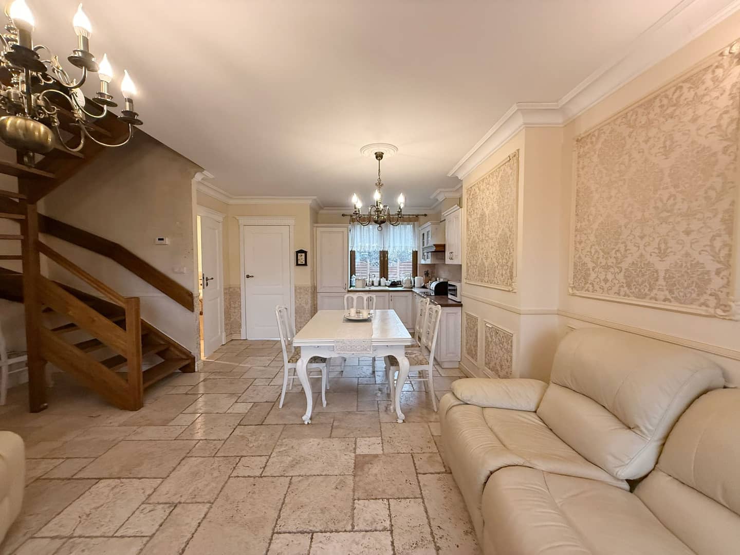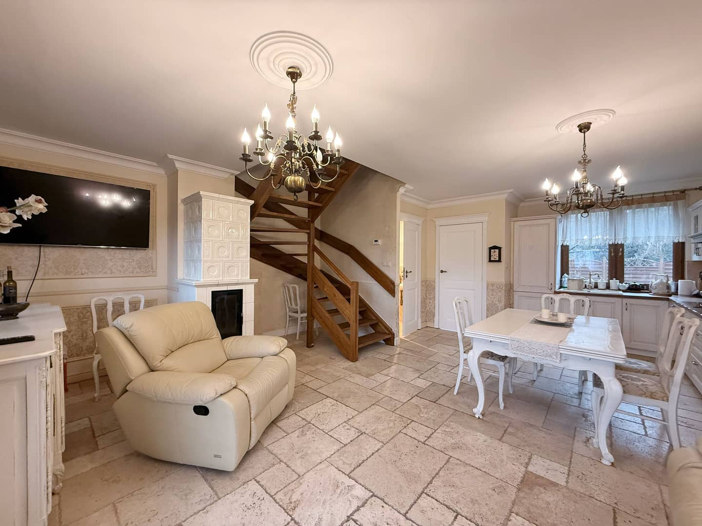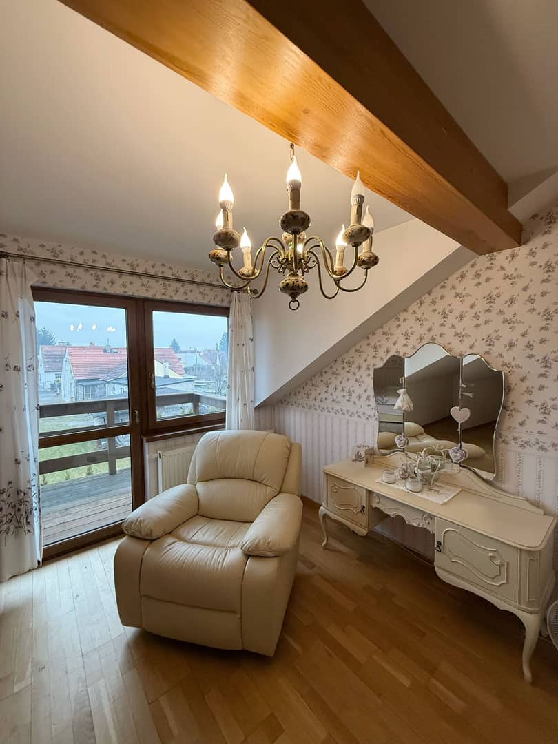 Lokal mieszkalny w bardzo dobrym stanie, okna pcv, na podłogach deska barlinecka, na parterze podłoga z naturalnego kamienia - trawertynu , piec kaflowy robiony na zamówienie, schody dębowe, wszystkie instalacje nowe, armatura włoska, dach – dachówka betonowa. Ogrzewanie własnym piecem gazowym 2 – funkcyjnym. Podatek roczny 290 zł. W cenie wyposażenie ( meble - antyki).