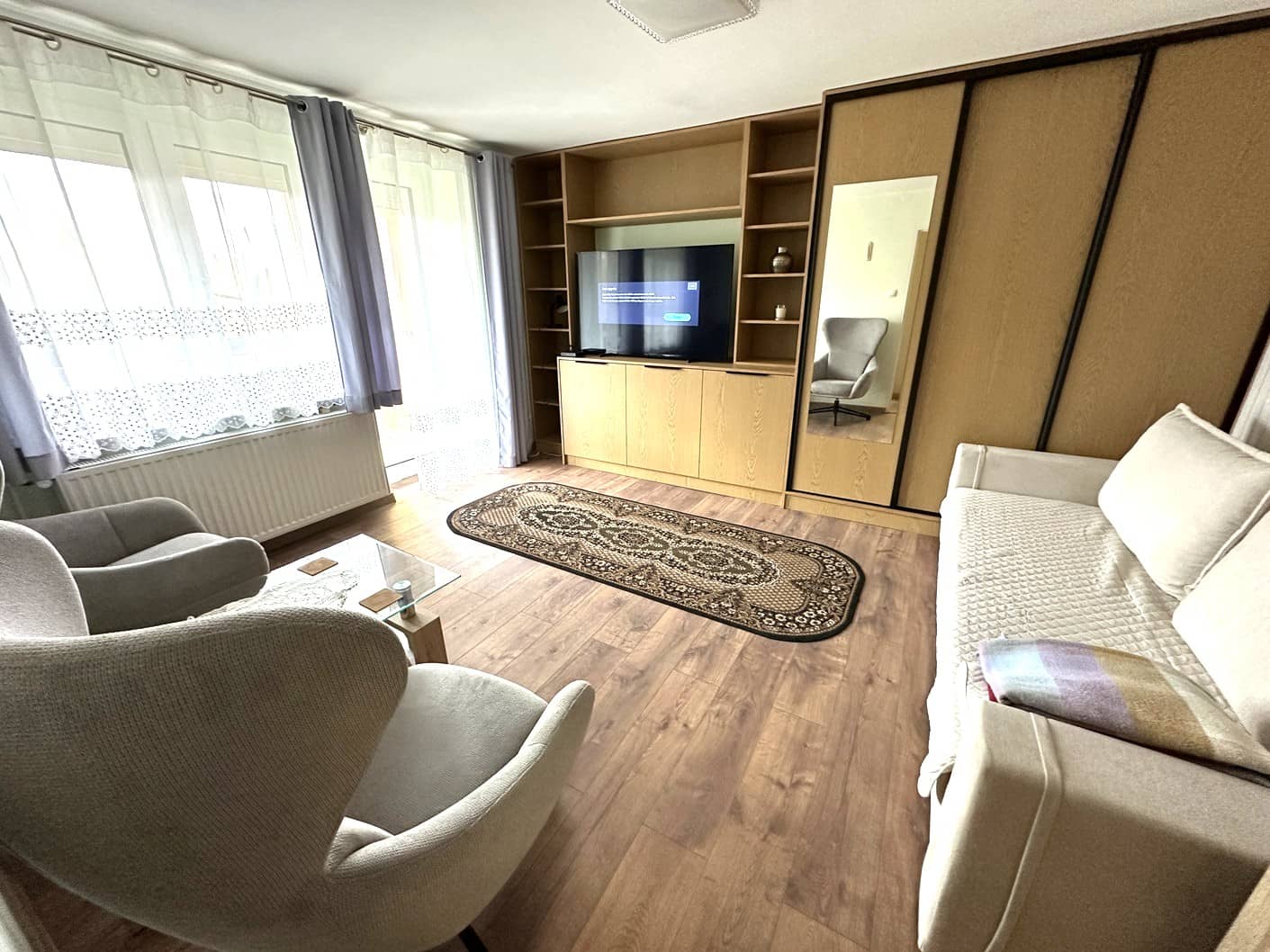 W cenie mieszkania pozostaje: kompletne wyposażenie jak na zdjęciach ( nowa zabudowa w pokoju robiona na wymiar, nowa kanapa, fotele, zabudowa kuchenna z lodówką i kuchenką elektryczną)- wszystko pozostaje w cenie.